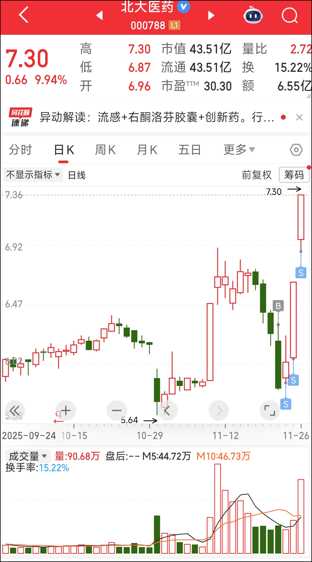 $北大医药(SZ000788)$ 连续涨停板要来了,姐姐睡了,嘻嘻#炒股日记#