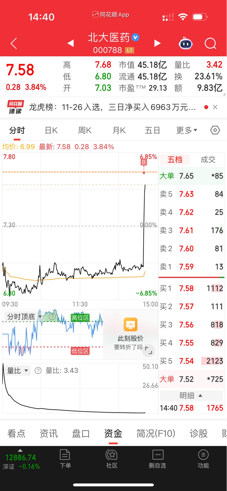 $北大医药(SZ000788)$ 知道你们都没我成本高