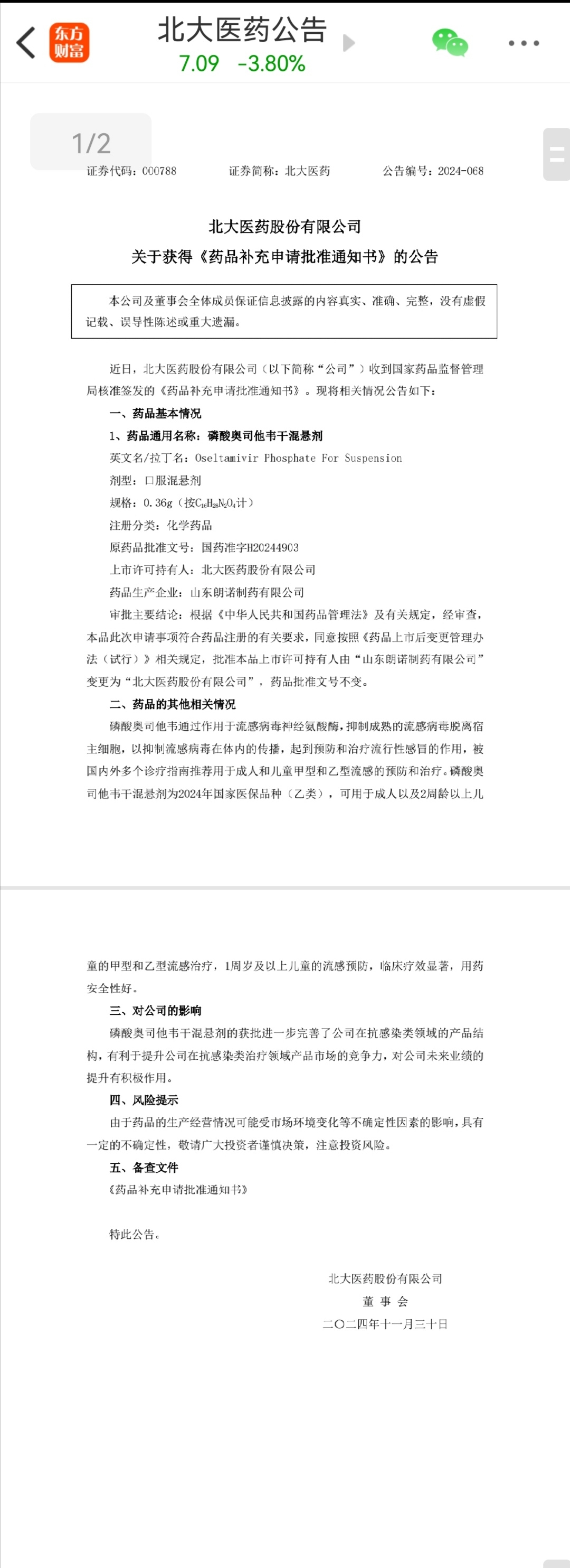 这个北大医药的公告,千真万确