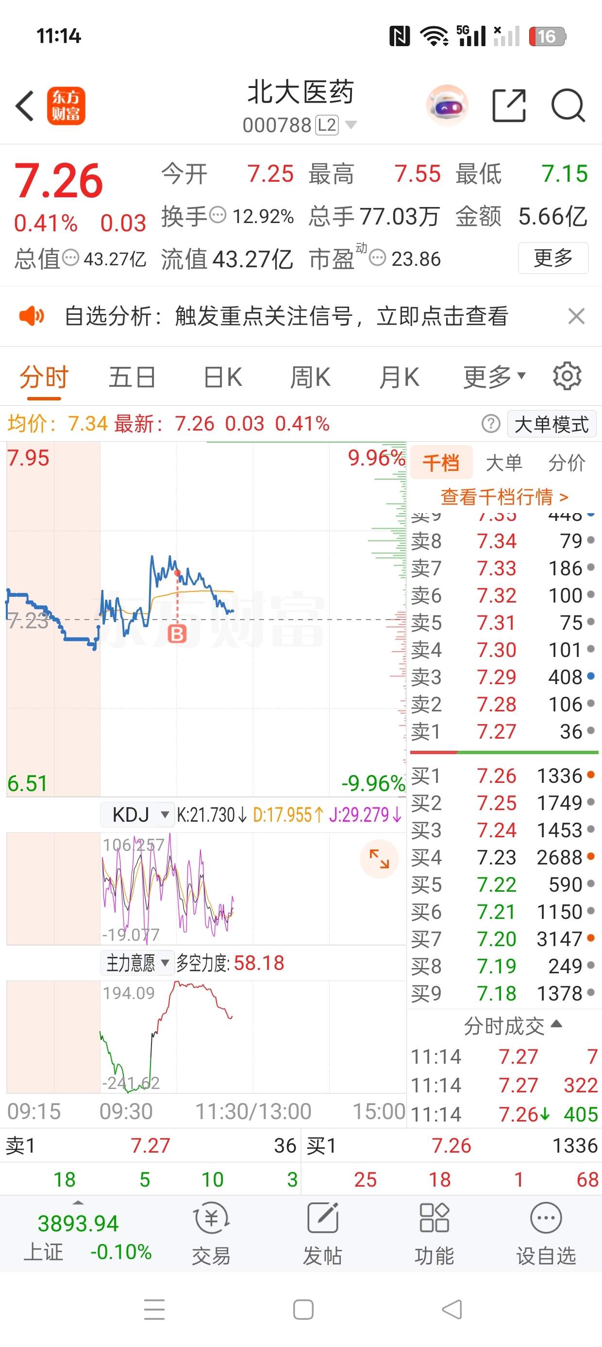 $北大医药(SZ000788)$ 买山顶上了,主力大哥,绕我一命
