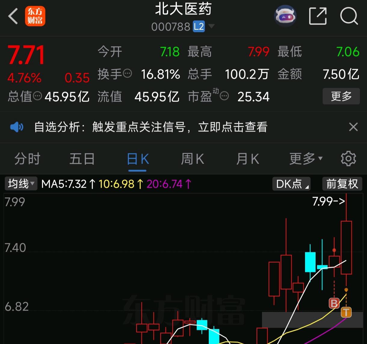 $北大医药(SZ000788)$ 刚来就t了八个点,真是好股