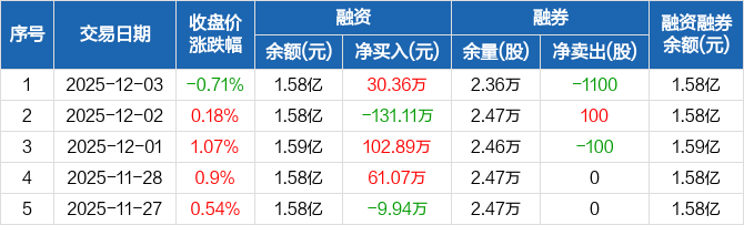 万年青:融资净买入30.36万元,融资余额1.58亿元(12-03)