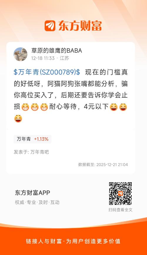 $万年青(SZ000789)$ 现在的门槛真的好低呀,阿猫阿狗张嘴都能分析,骗你高位买入了,后期还要告诉你学会止损