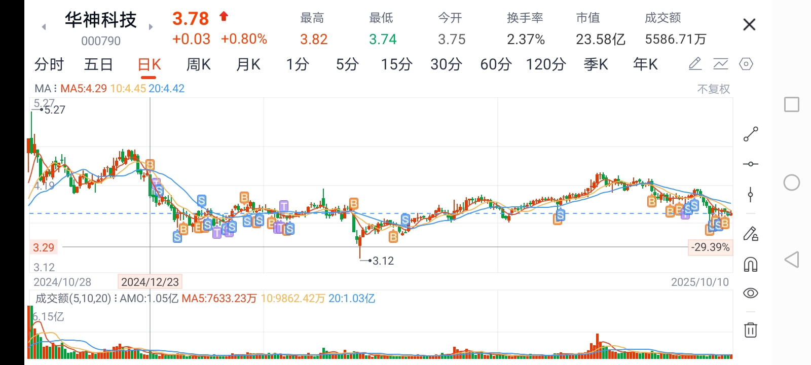$华神科技(SZ000790)$ 2024.12.23上的贼船,还一直在海上飘着