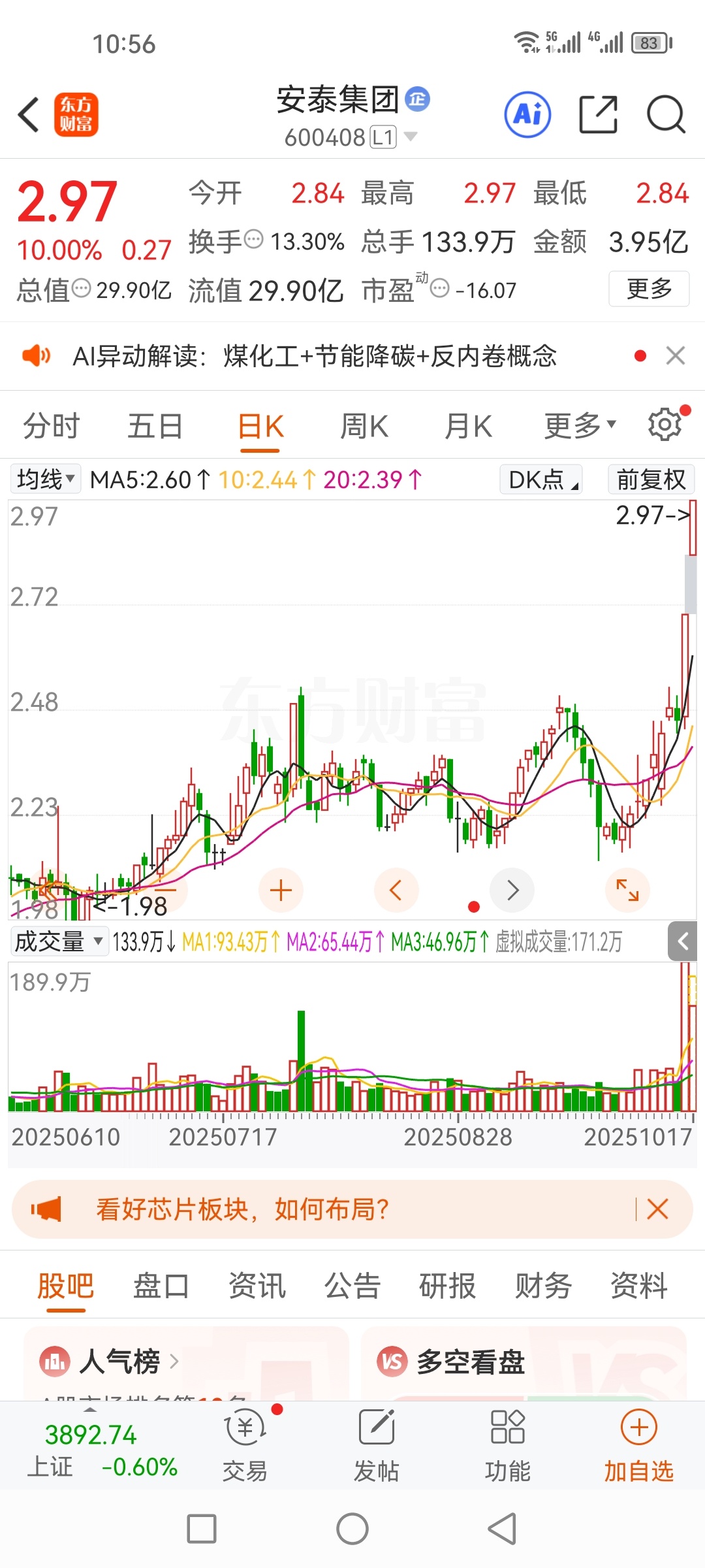 安泰集团又从2.15涨到2.5之上喽。