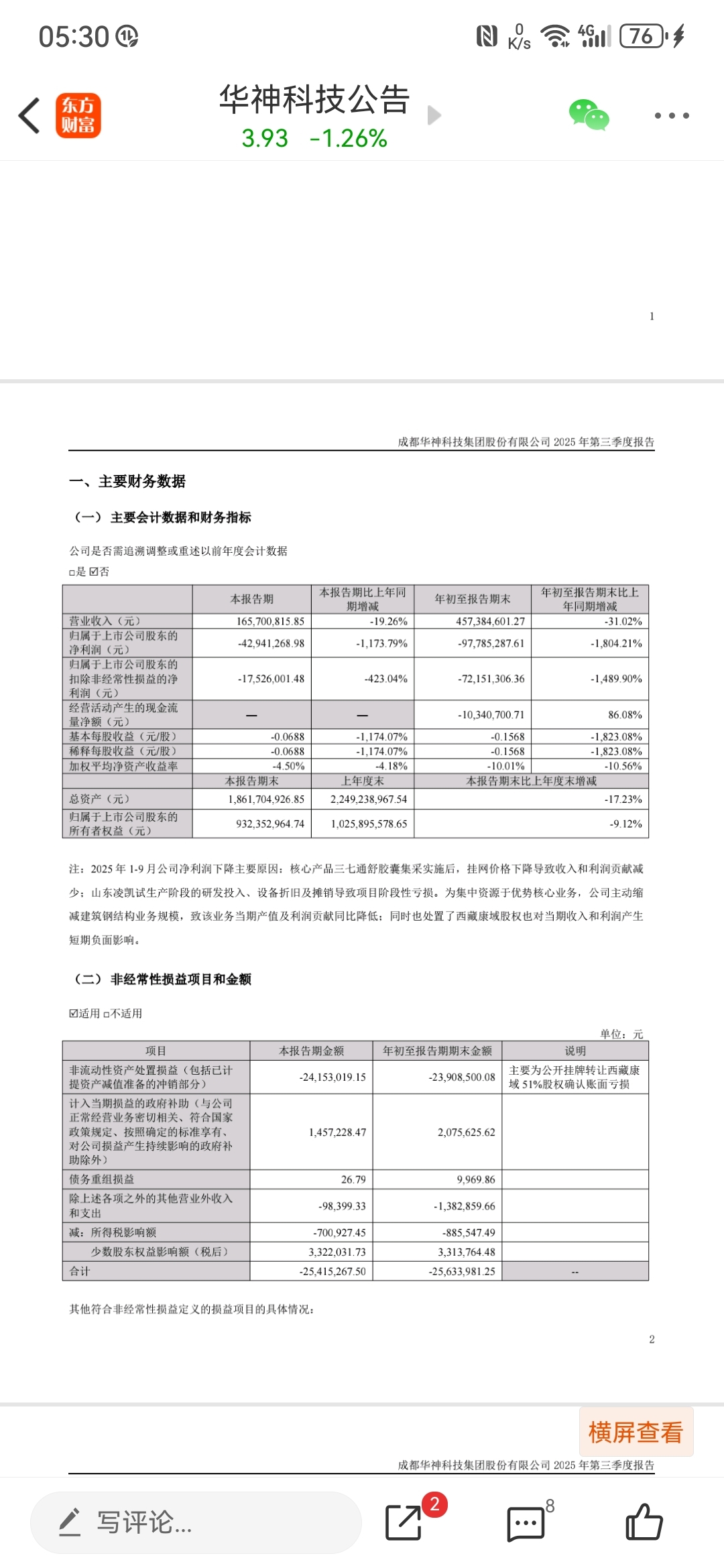 $华神科技(SZ000790)$ 看一下三季报的亏损原因