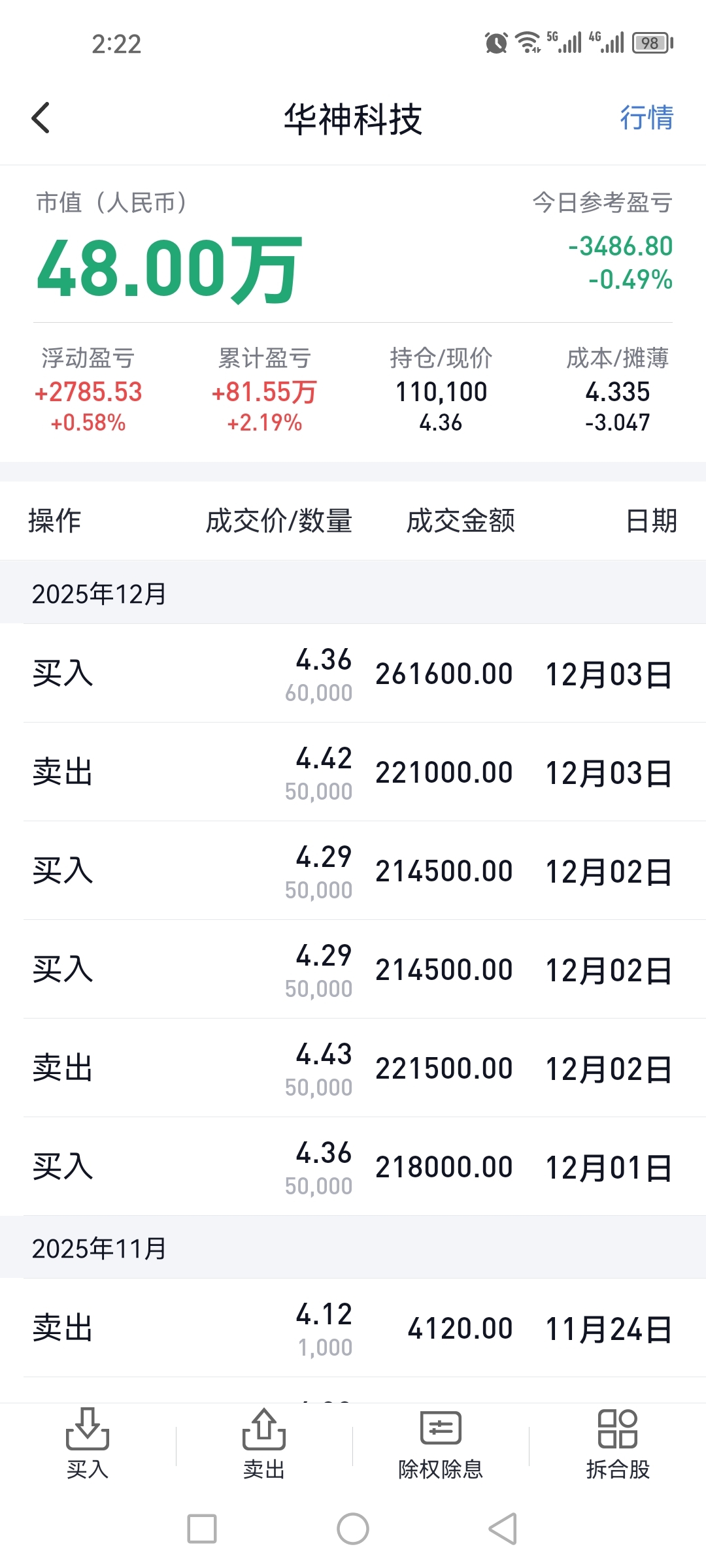 加了一点点仓,如果明天赚钱了,割上海黑猪肉,炖杀猪菜。