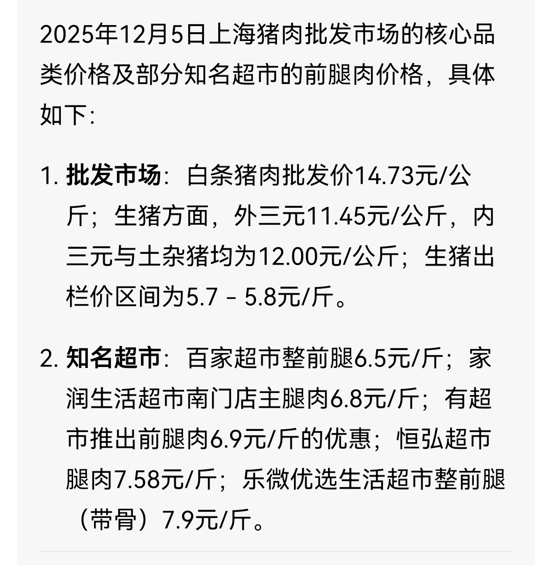 上海猪肉呢?两头上海黑猪昨夜又嗷嗷叫唤到后半夜,今天肉质好。猪肉价格涨了一点点,