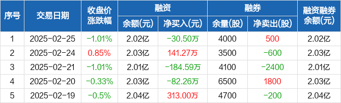 甘肃能源:融资净偿还30.5万元,融资余额2.02亿元(02-25)