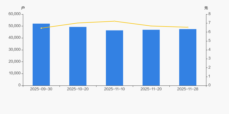 2025年9月30日至今,公司股东户数有所下降,区间跌幅为8.84%。2025年9月30日至2025年11月28日区间股价上涨1.55%。