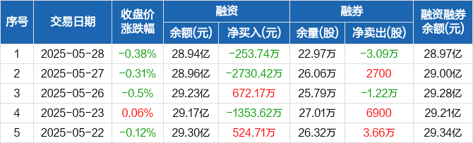 盐湖股份:融资净偿还253.74万元,融资余额28.94亿元(05-28)