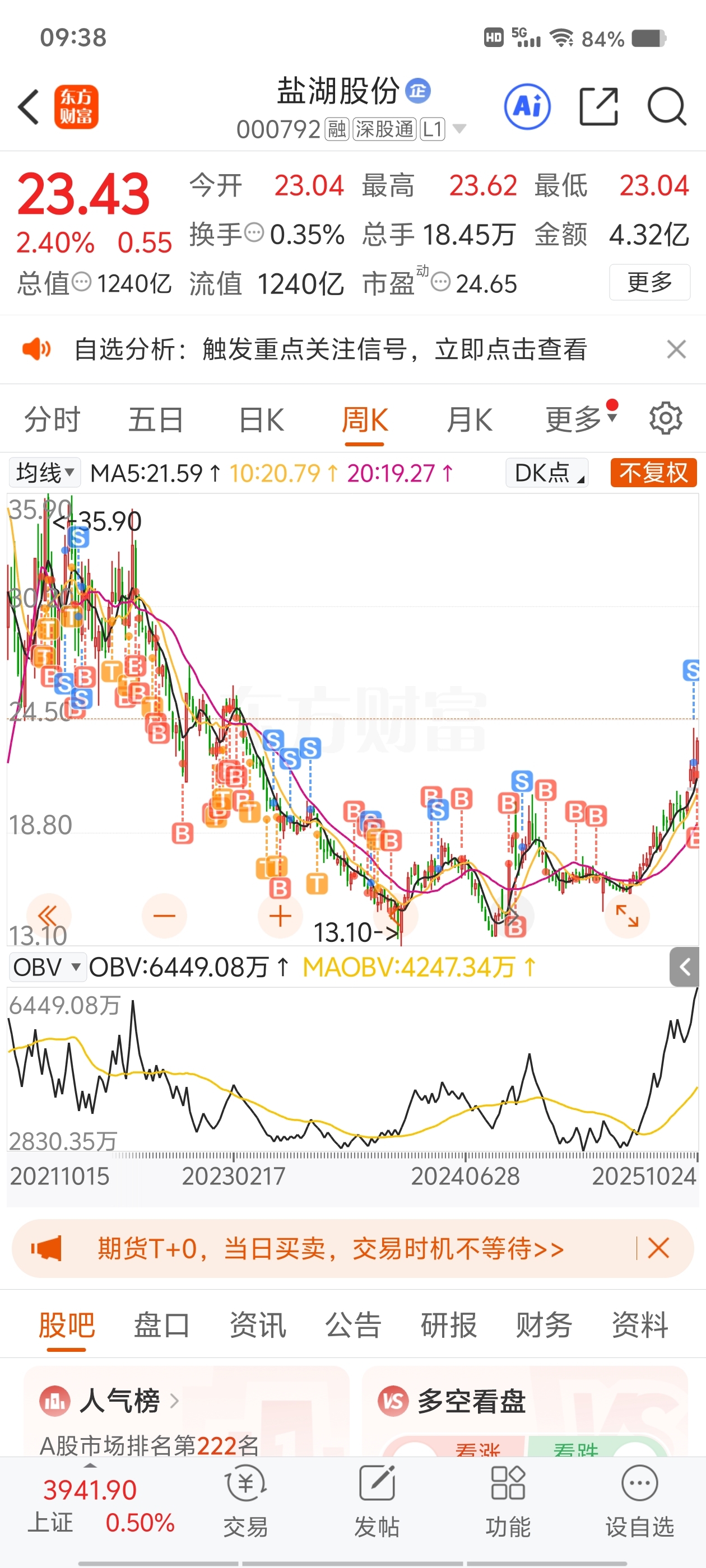$盐湖股份(SZ000792)$ 四年了,终于回本了。感谢国家,感谢主力。