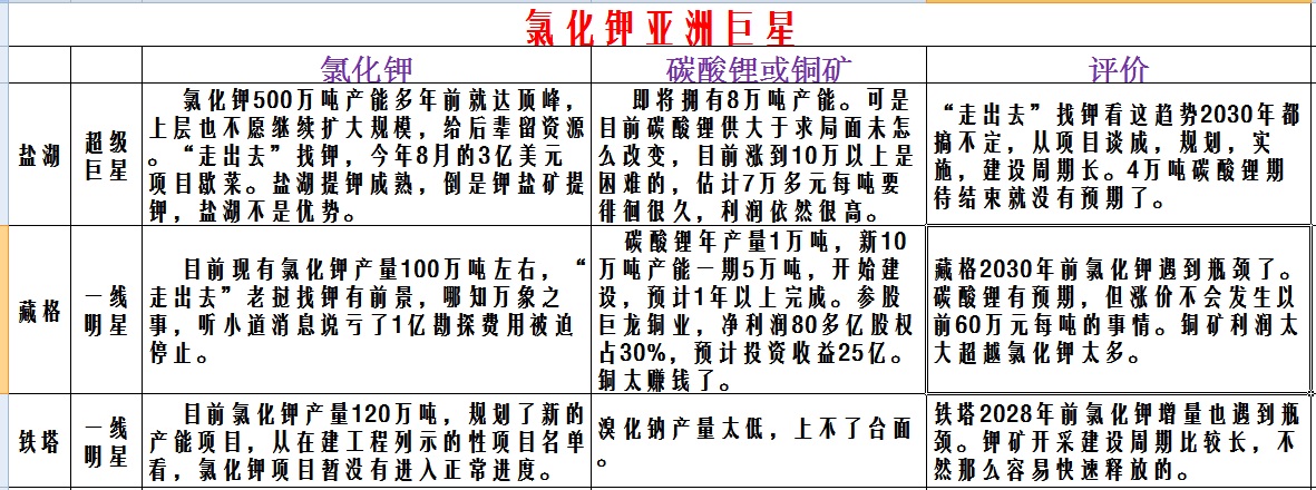 盐湖氯化钾增量遇到瓶颈,藏格也是,铁塔也是。前2者碳酸锂看似可以,其实当前也是供大于求,而且涨价不会太高了。