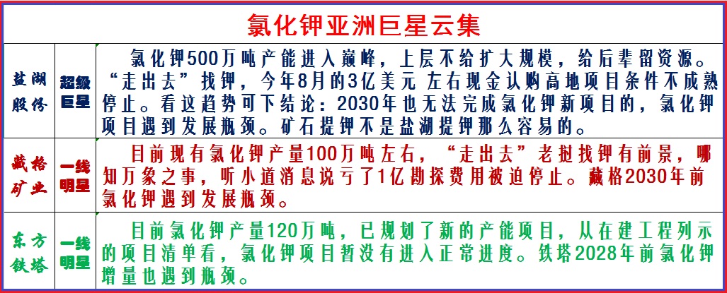 都遇到瓶颈了!吹不了多久了。钾盐矿开采没有5-8年是不得行的,除了某……
