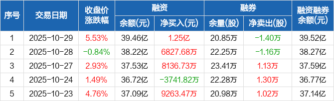 盐湖股份:融资余额39.46亿元,创近一年新高(10-29)