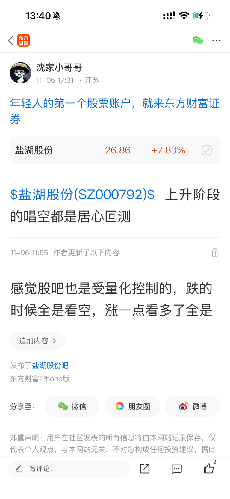 温馨提示: 1.根据《证券法》规定,禁止编造、传播虚假信息或者误导性信息,扰乱证券市场;2.用户在本社区发表的所有资料、言论等仅代表个人观点,与本网站立场无关,不对您构成任何投资建议。用户应基于自己的独立判断,自行决定证券投资并承担相应风险。《东方财富社区管理规定》