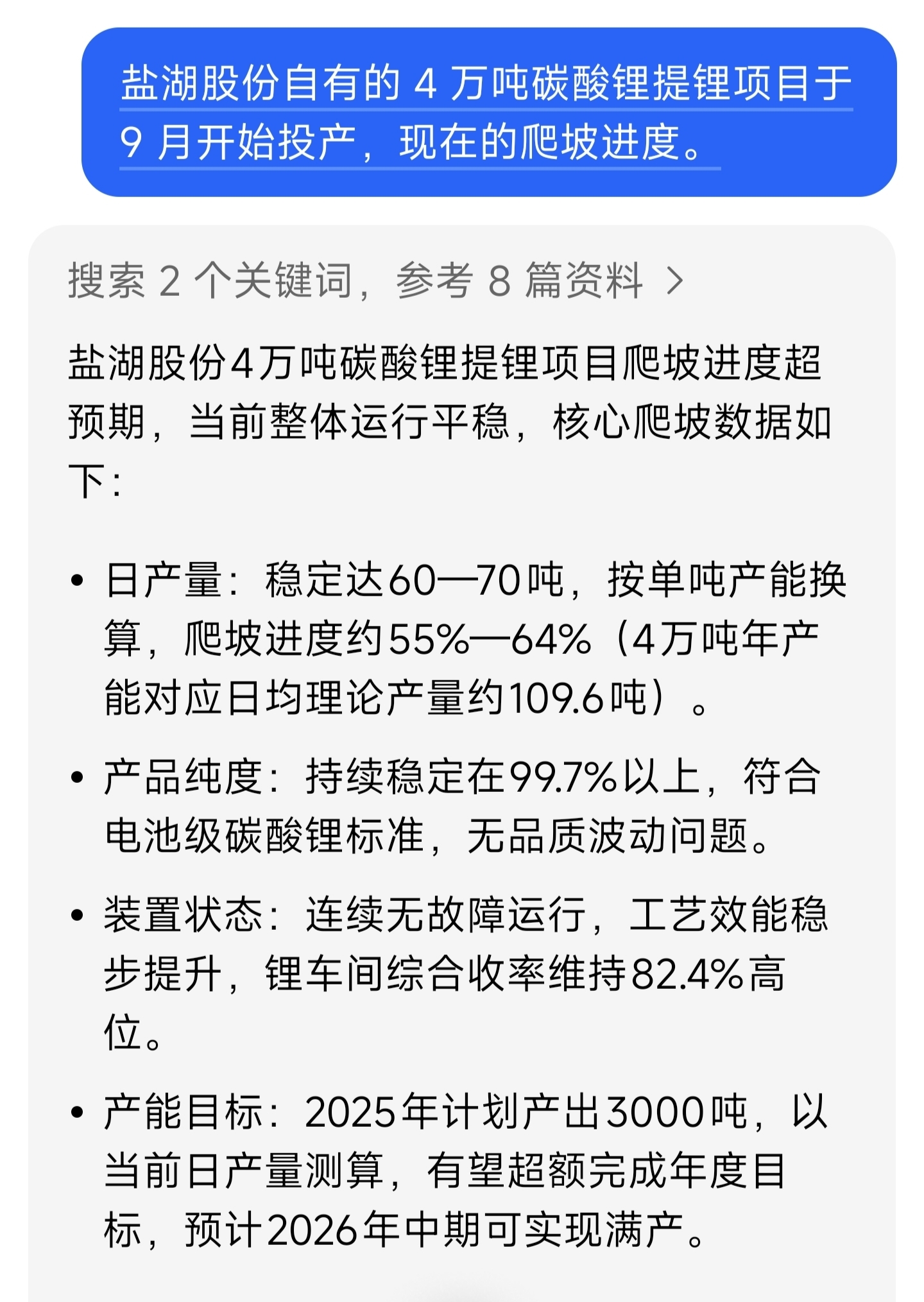 自有的4万吨“电池级碳酸锂”产能开始爬坡。
