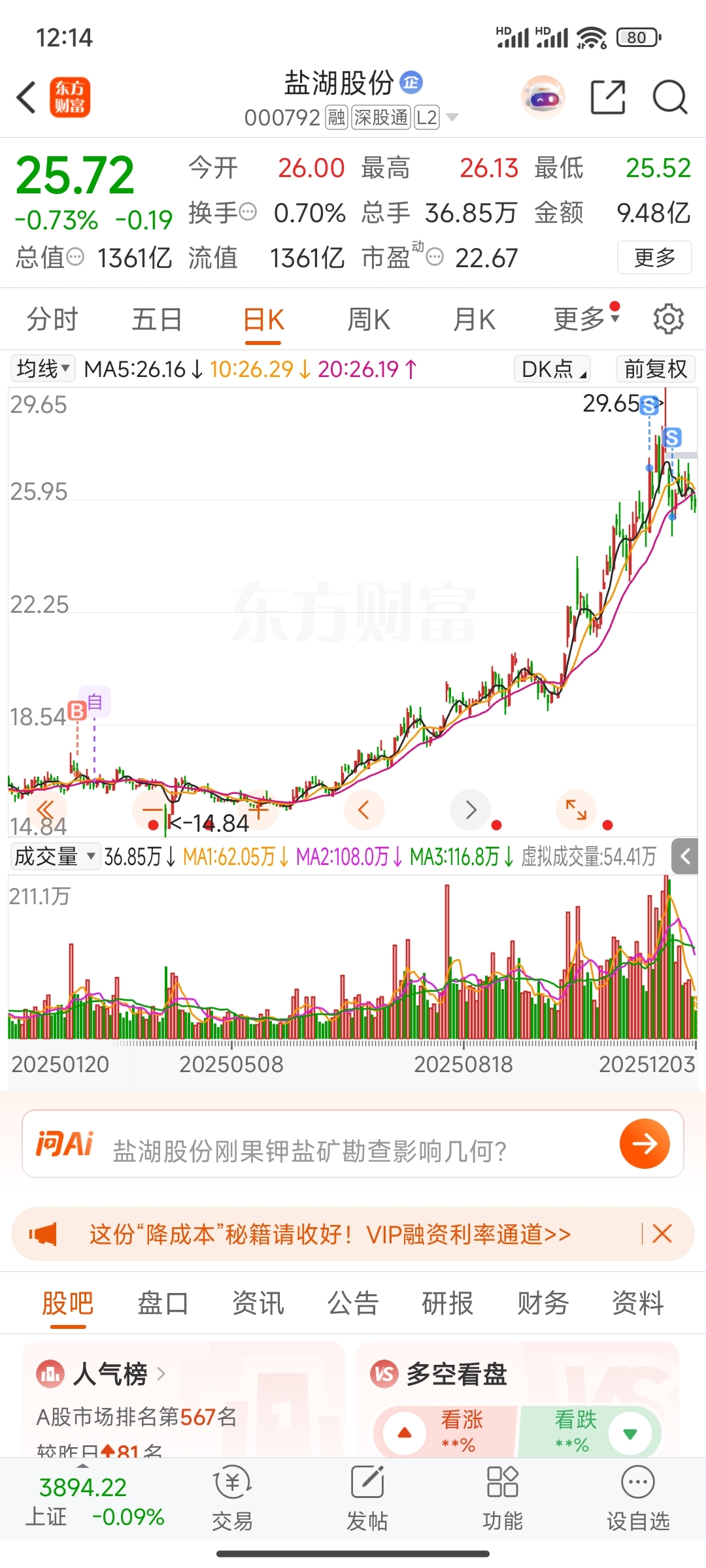 $盐湖股份(SZ000792)$ 感觉会卖飞,过段时间买回来。