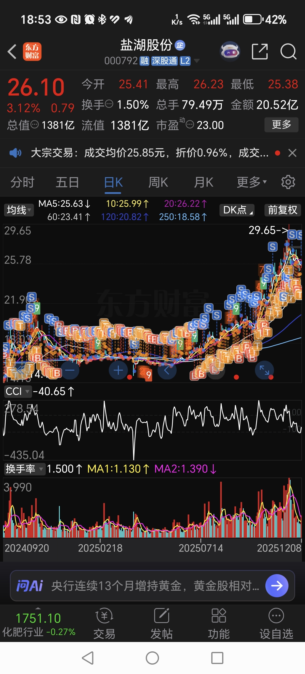 $盐湖股份(SZ000792)$ 长期看好,别带边T