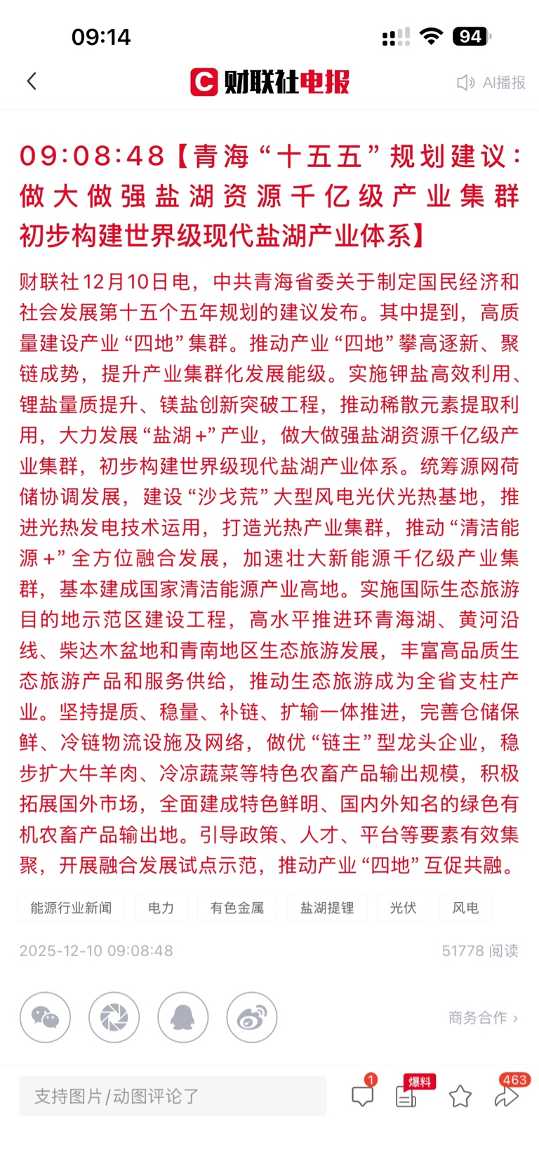 $盐湖股份(SZ000792)$ 今天能涨一涨吗