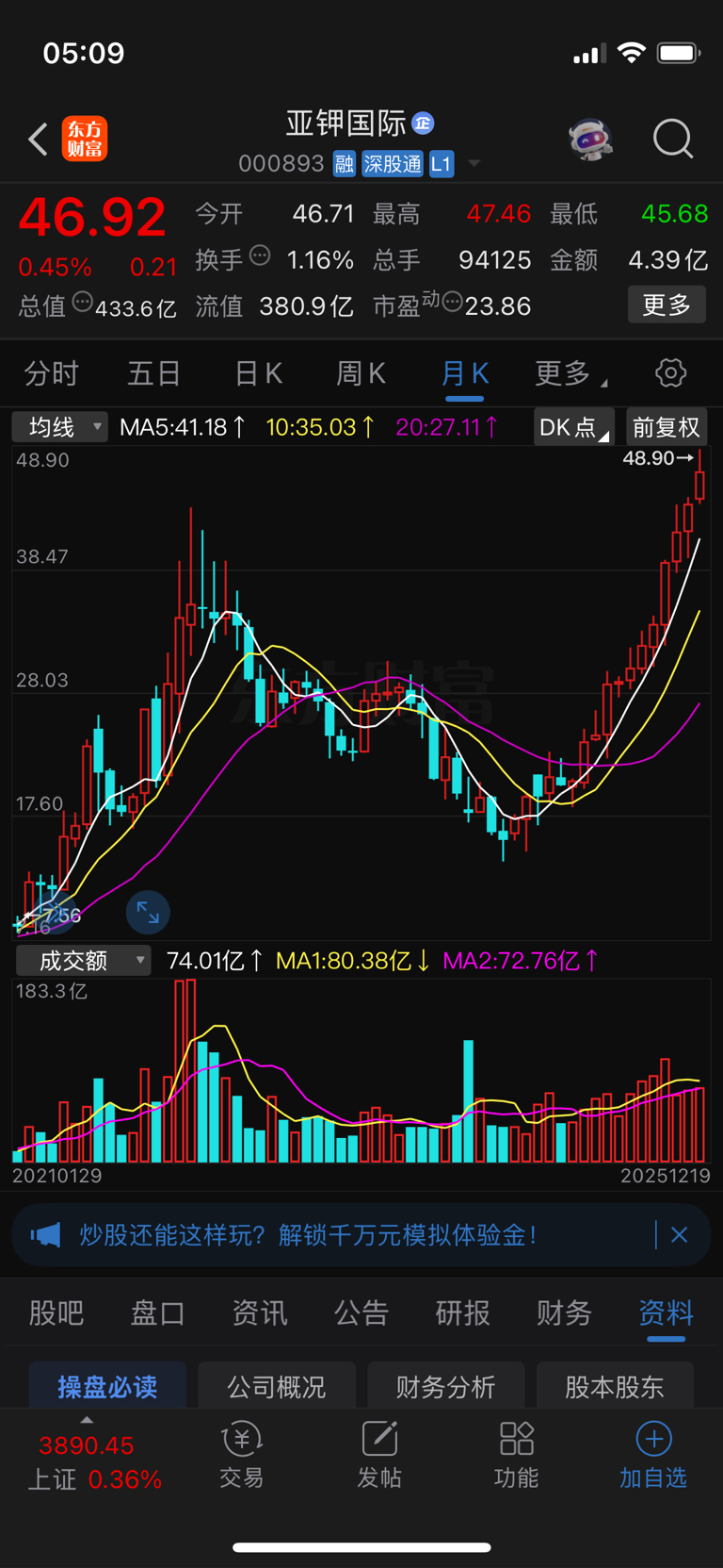 $盐湖股份(SZ000792)$ 作为同一生产钾肥的企业亚钾国际,一路高歌猛进。你们还在担心什么?