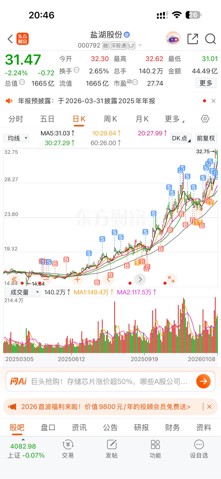 $盐湖股份(SZ000792)$ 赚的彭满钵满,但我还是怂了