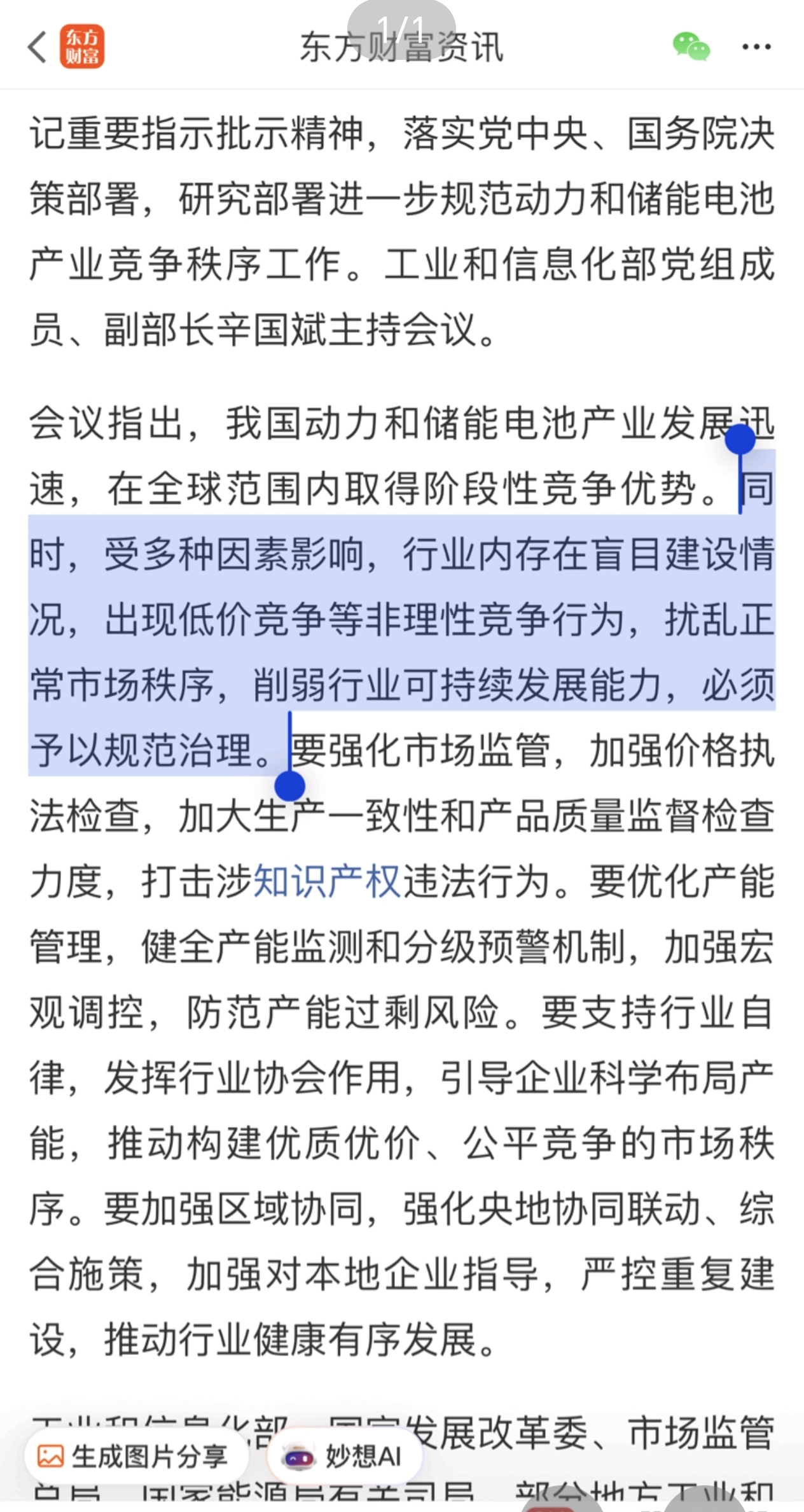 2026年1月7日,工信部、国家发改委等四部门联合召开动力和储能电池行业座谈会,核心是整治行业非理性竞争、防范产能过剩,具体指向: