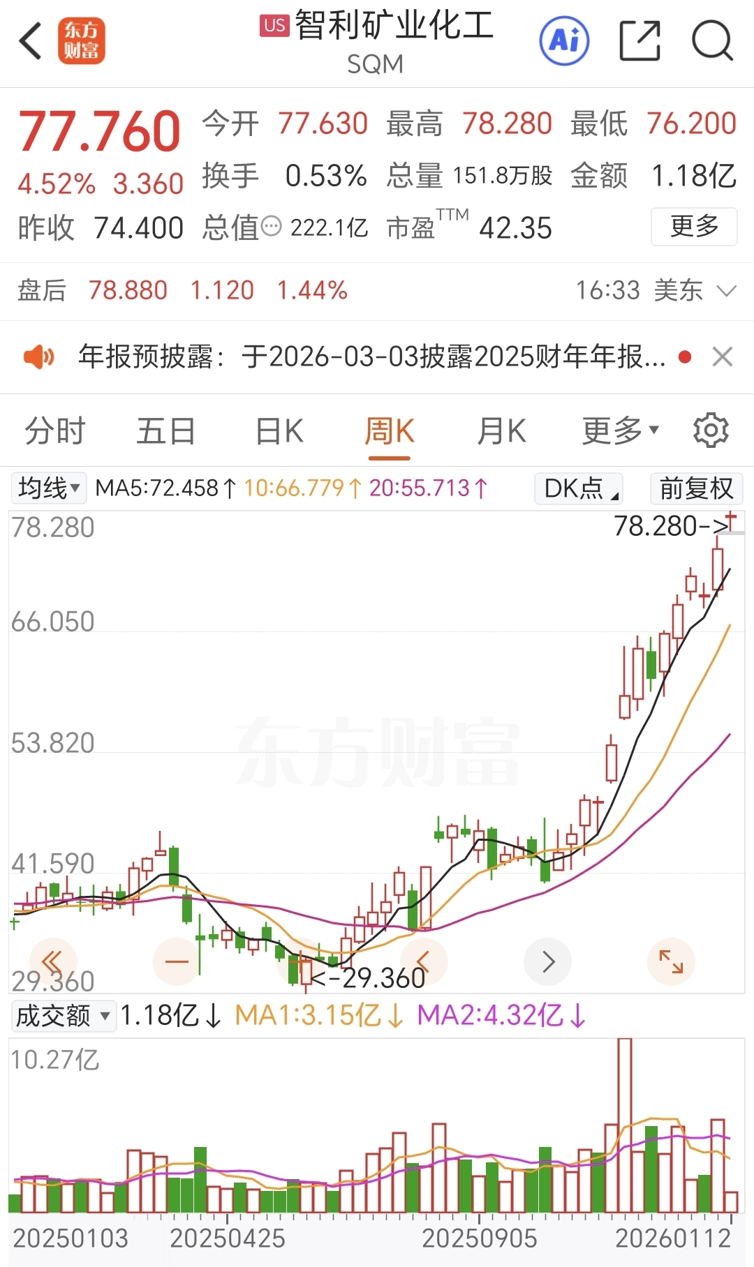 昨晚美股锂矿板块涨幅不错,趋势加速。