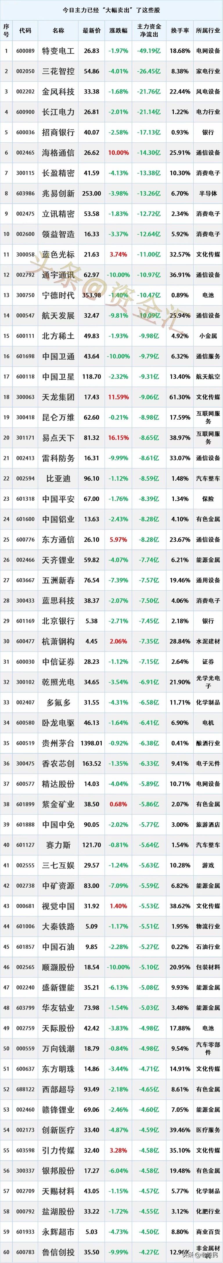 $盐湖股份(SZ000792)$ 1.14号主力资金大幅度出逃这些股