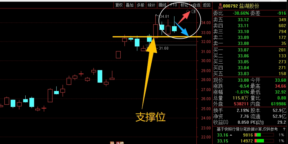$盐湖股份(SZ000792)$ 中期趋势走得很强,一直不断的震荡上行,短线这几天高位做了个横盘走势,接下来重点看能否继续突破拉高,防守上主要就看脚底横线位置的支撑,能稳住就没问题,有效跌破就需要注意短线的回调,控制好仓位应对。#炒股日记# #周末杂谈#