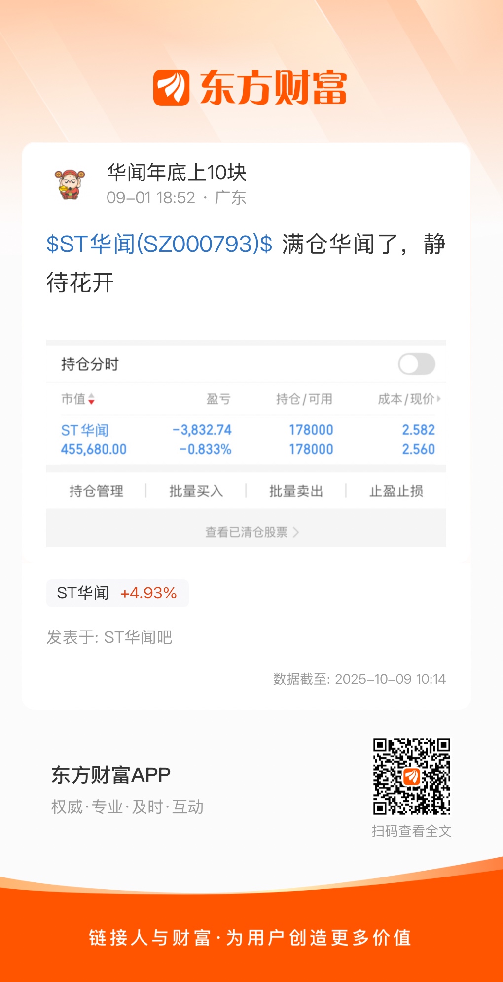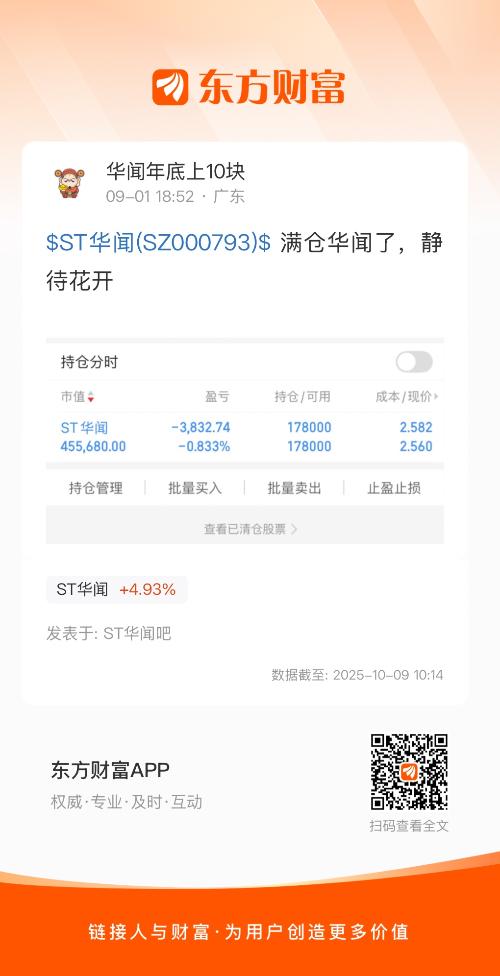 $ST华闻(SZ000793)$ 满仓华闻了,静待花开