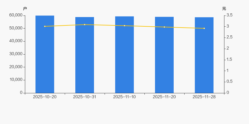 2025年10月20日至今,公司股东户数有所下降,区间跌幅为2.15%。2025年10月20日至2025年11月28日区间股价下降2.99%。