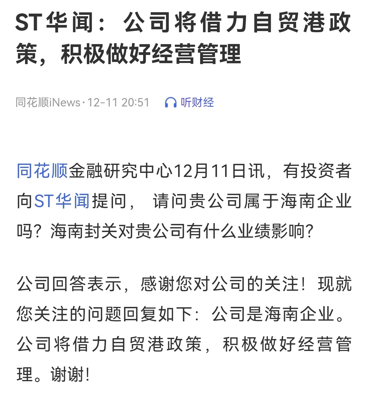 $ST华闻(SZ000793)$ $海南自贸(BK1193)$ $海南发展(SZ002163)$ 如果错过了海南发展、错过了海南高速、错过了海南瑞泽,也错过了神农种业,先不要拍自己大腿!还有一支低价、国资的海南本地股尚未启动,甚至它还在历史底部!它就是ST华闻!