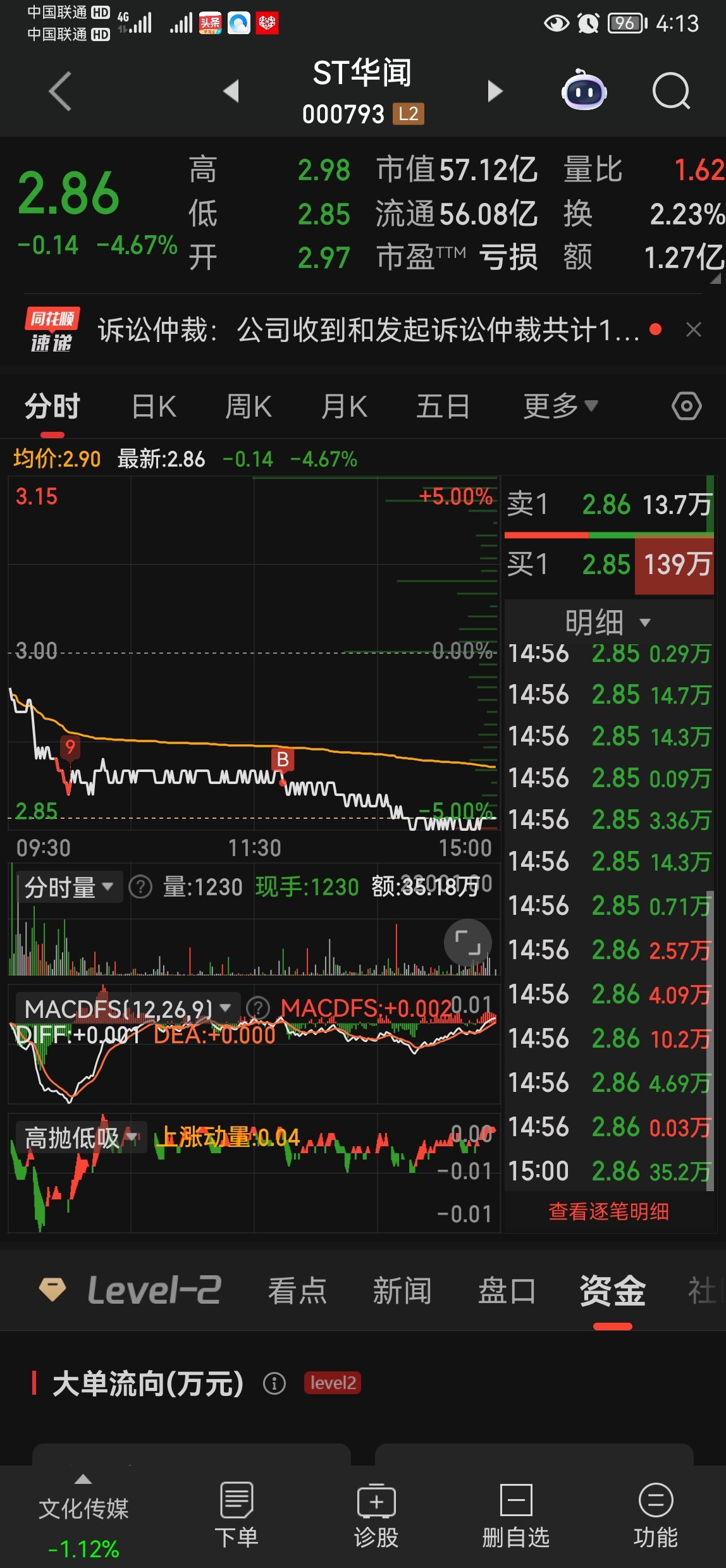 $ST华闻(SZ000793)$ 今天又买回来了半仓真爽,明天不知道能不能再捡点便宜筹码,哈哈