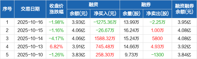 英洛华:融资净偿还1275.36万元,融资余额3.93亿元(10-16)