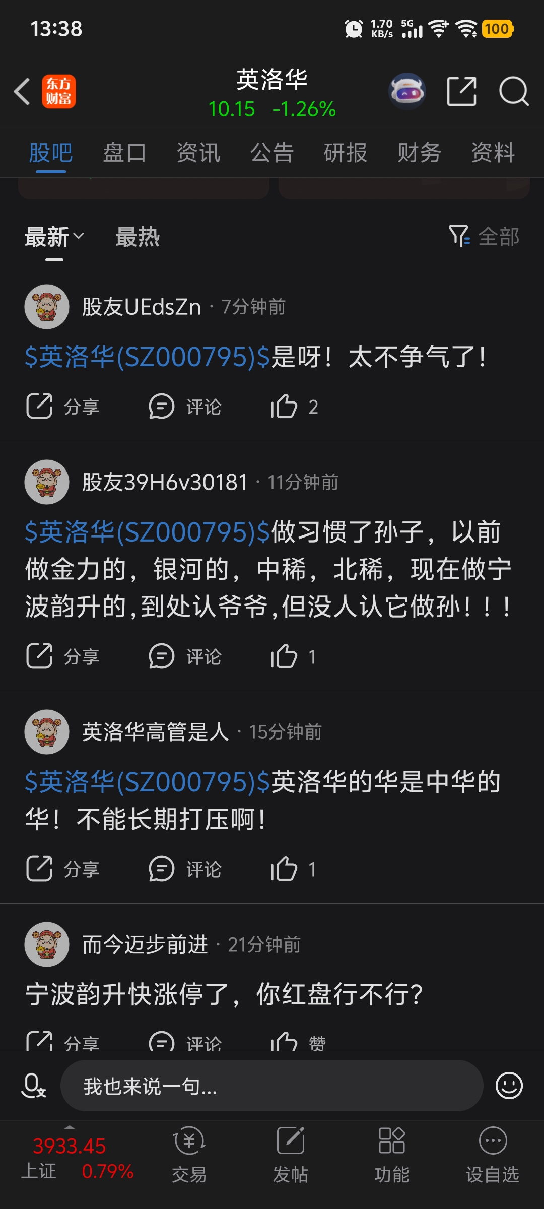 $英洛华(SZ000795)$ 这么多韭菜一天到晚股吧刷屏能涨?