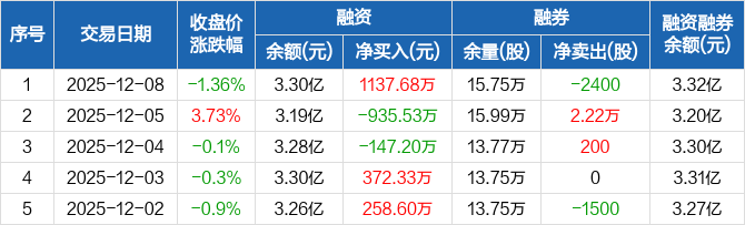 英洛华:融资净买入1137.68万元,融资余额3.3亿元(12-08)