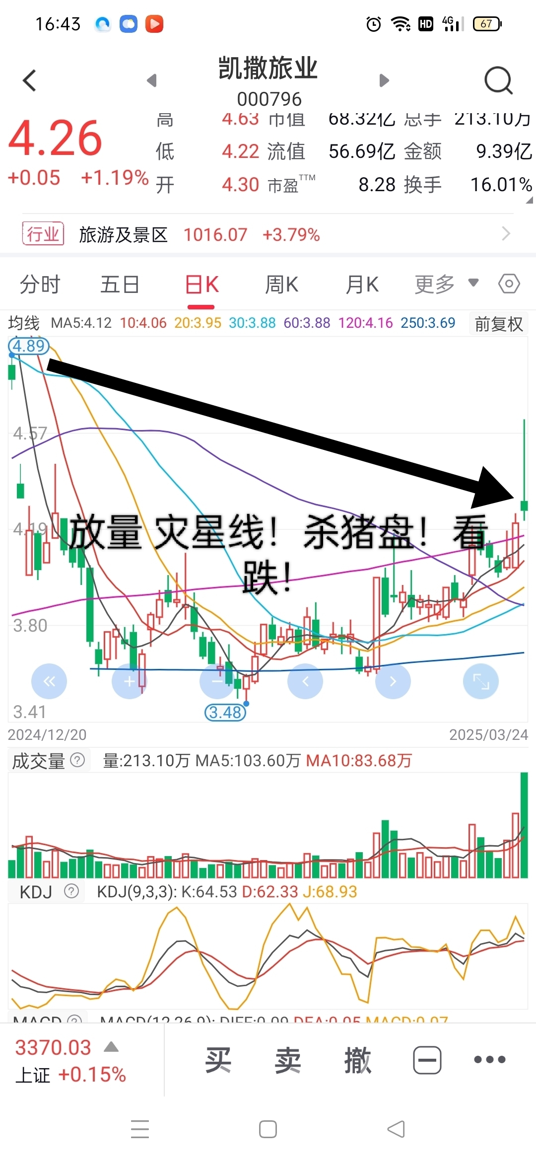 凯撒旅业,放量灾星线!