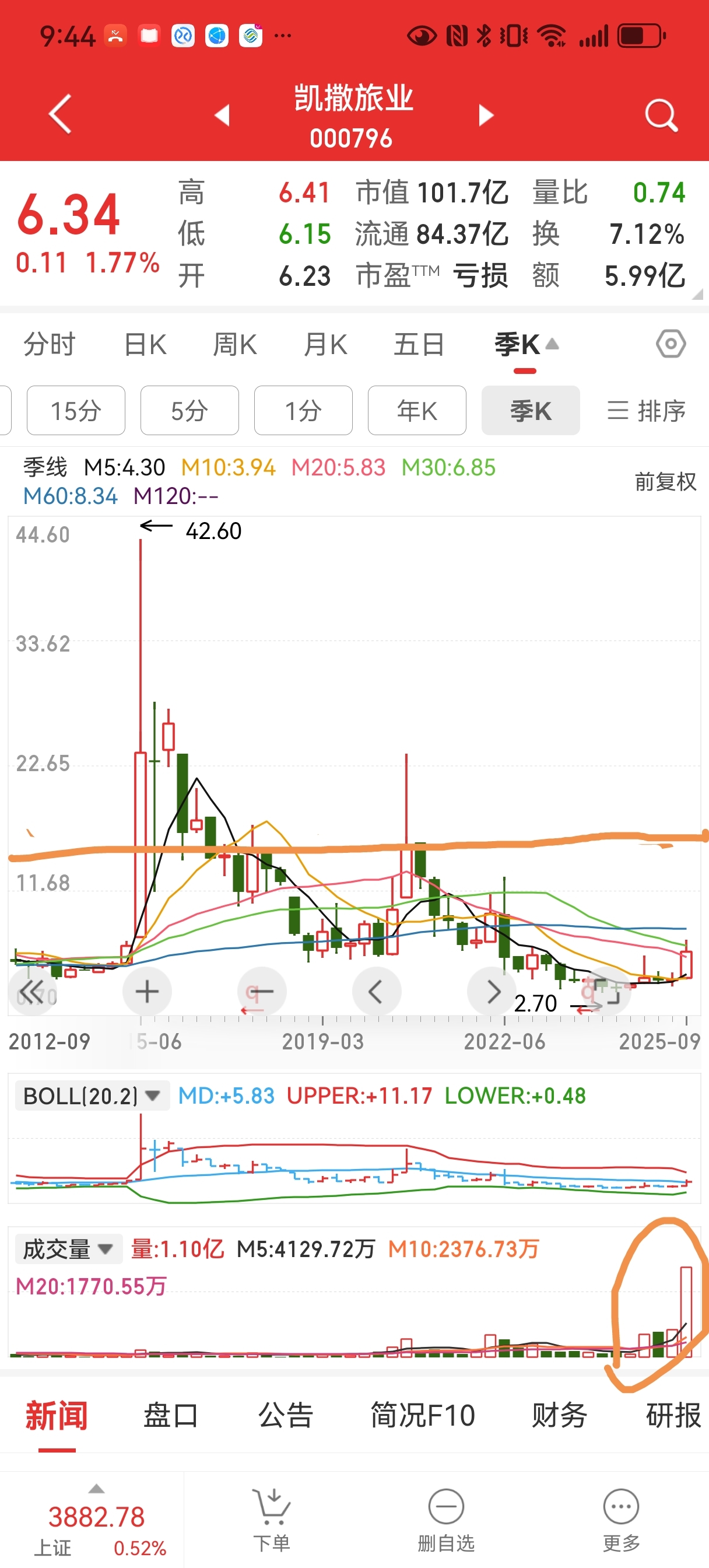 $凯撒旅业(SZ000796)$ 看季线,翻倍很难吗?