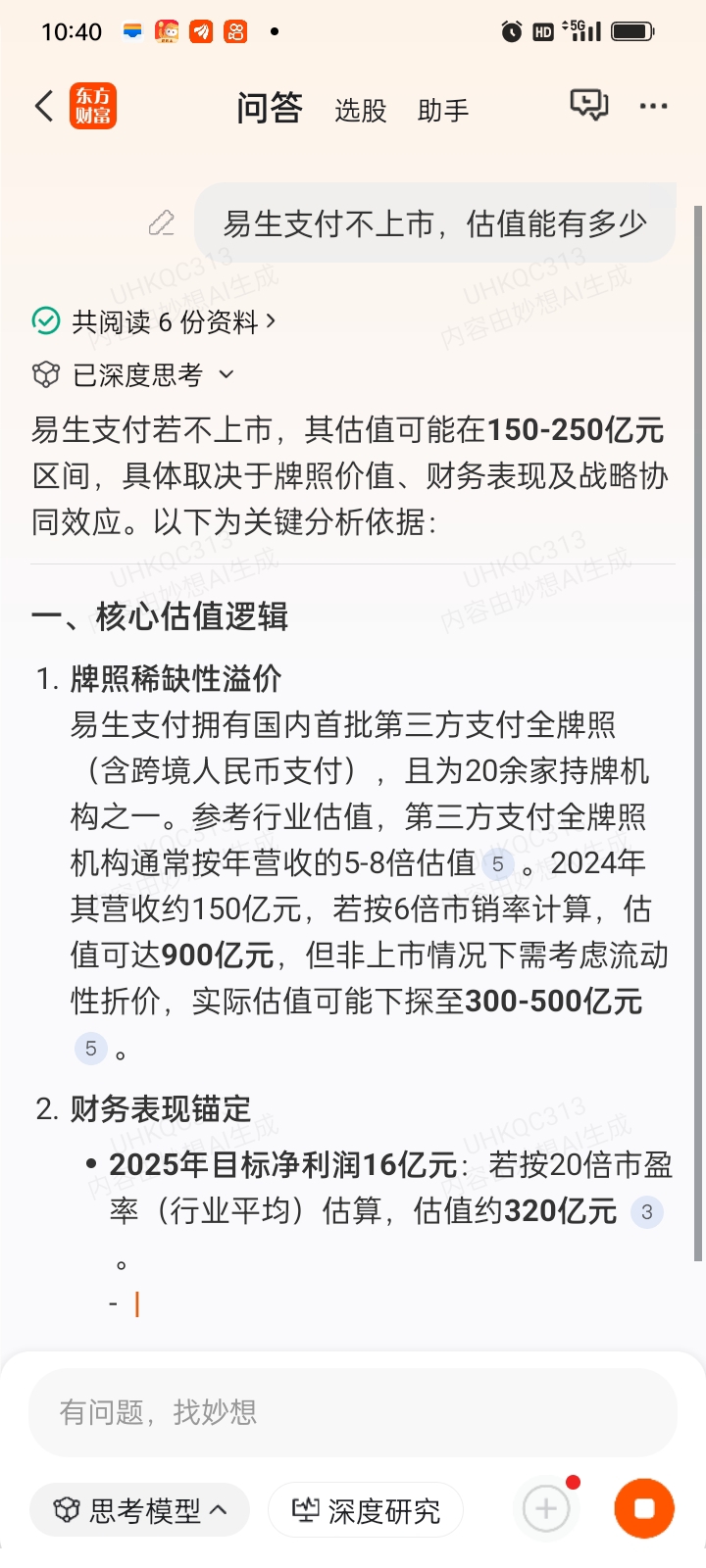 易生支付就是不上市,也估值250个亿,凯撒才100亿的盘子,如果转让易生支付立马