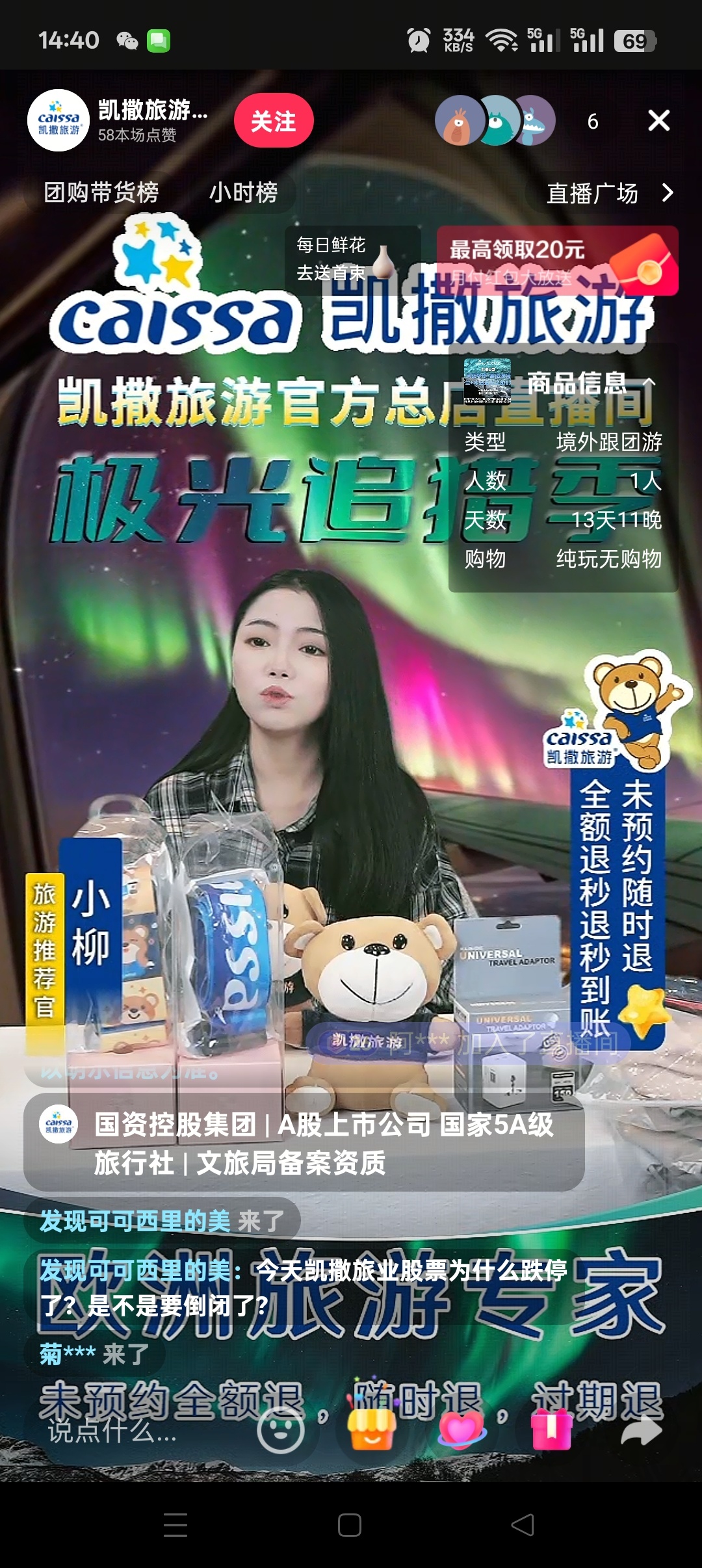 去凯撒旅游的直播间咨询了一下,被主播直接无视了