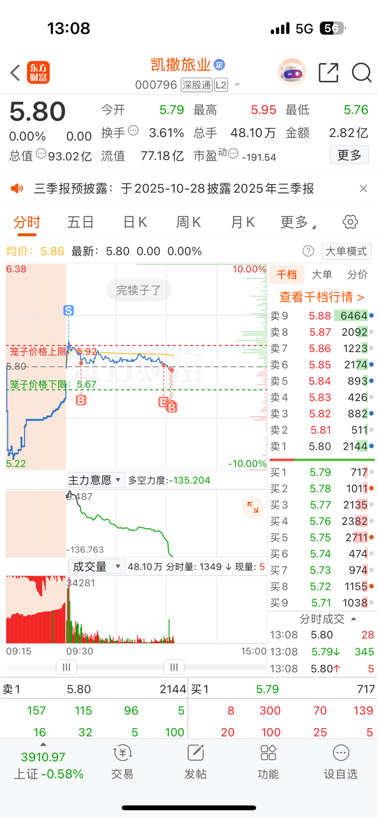$凯撒旅业(SZ000796)$ 主力你吃饱了吗