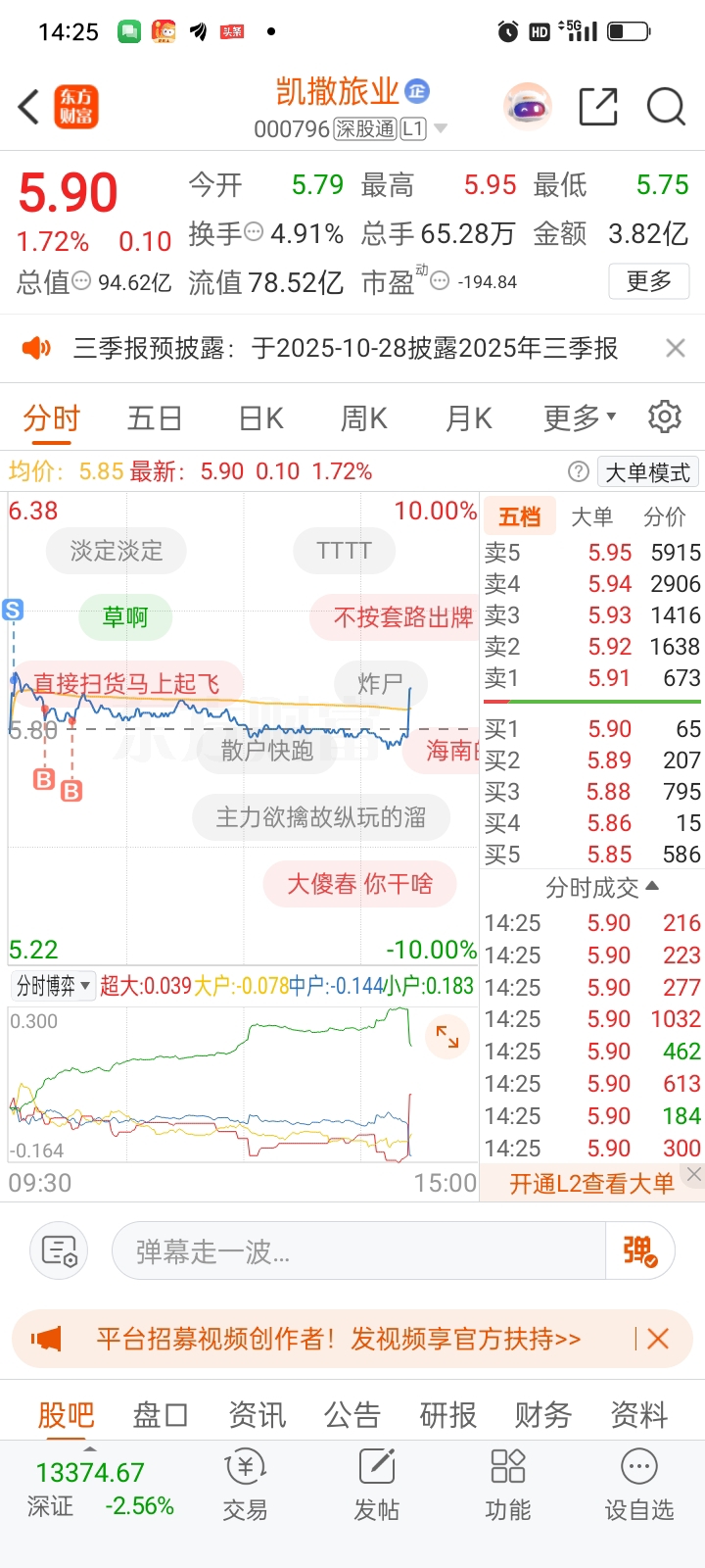 $凯撒旅业(SZ000796)$ 运气好,火箭