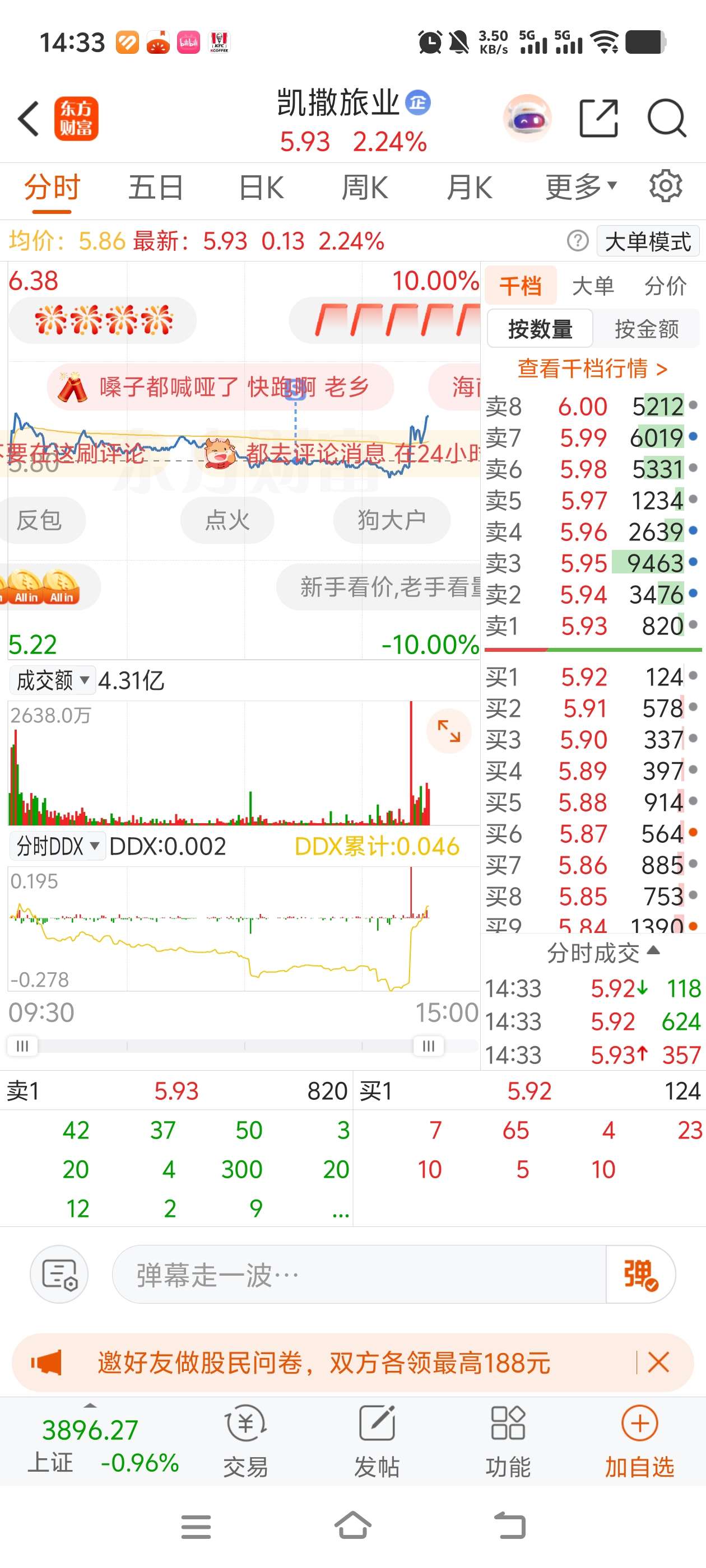 $凯撒旅业(SZ000796)$ 卖了5手,果然涨了!!我就知道我一卖你就涨,可惜我只卖了5手,晃你一下子