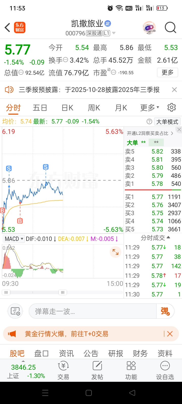 $凯撒旅业(SZ000796)$ 跌麻了,几乎最高点买入,7.2建仓的,成本t到6块还在跌