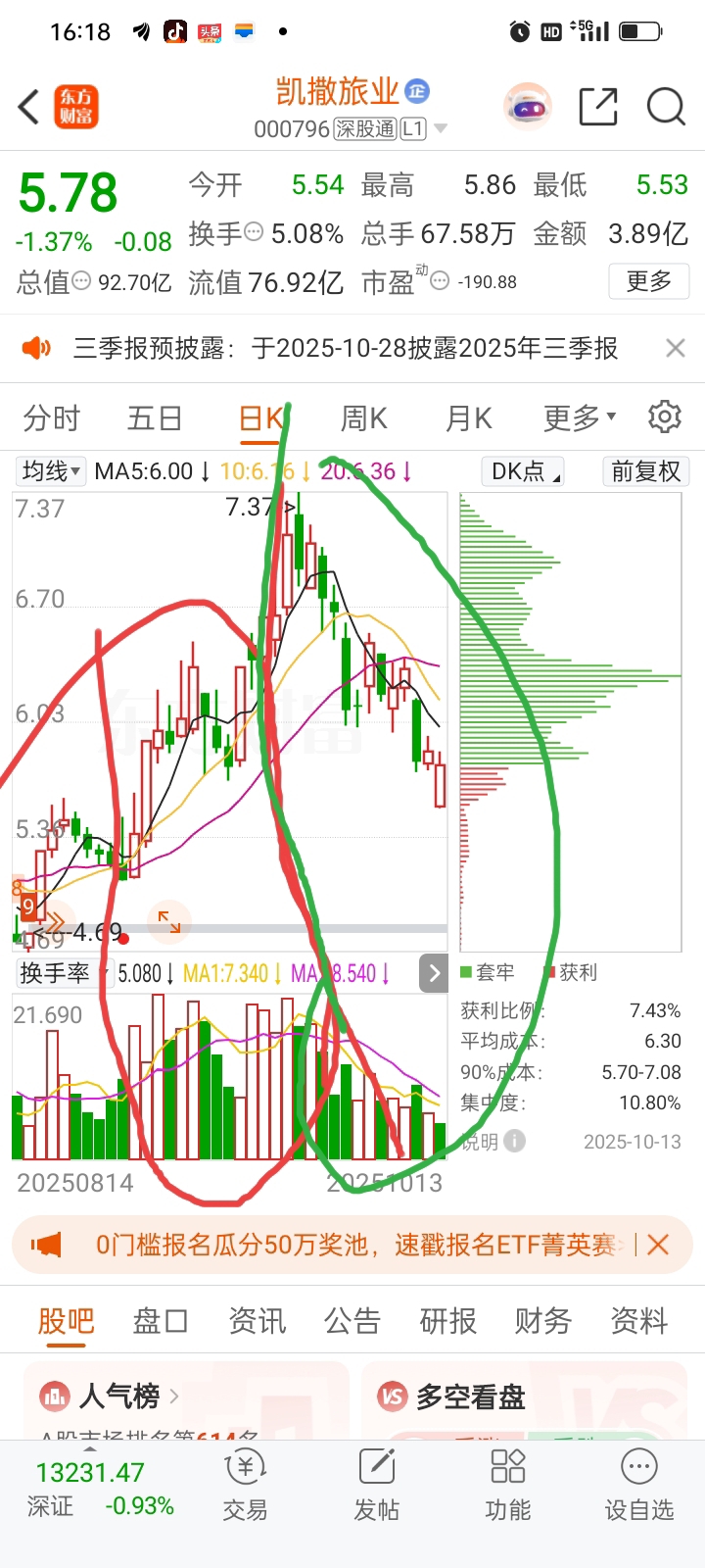 $凯撒旅业(SZ000796)$ 今天不谈题材,就问大家一个最简单的问题,红色圈里面的资金能有机会从绿色圈子里全身而退不。今天10个账户一起5.7附近整了500万,但是我非常不开心,主力太没格局,杀敌一千自损800。明天决定加大买进力度,把最能打的教导总队调来大干