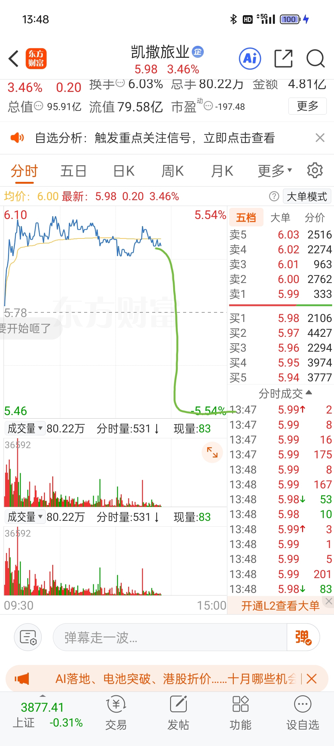 $凯撒旅业(SZ000796)$ 你快些的吧,我已经减仓了。