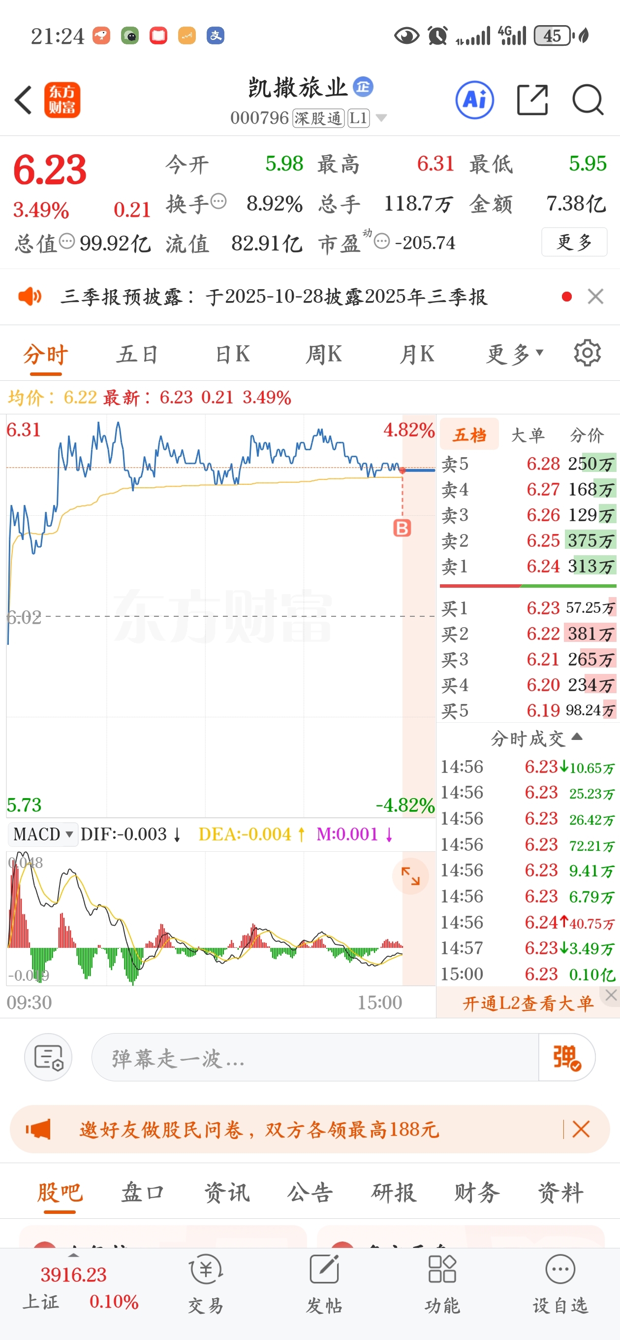 $凯撒旅业(SZ000796)$ 尾盘买了,明天我来砸盘