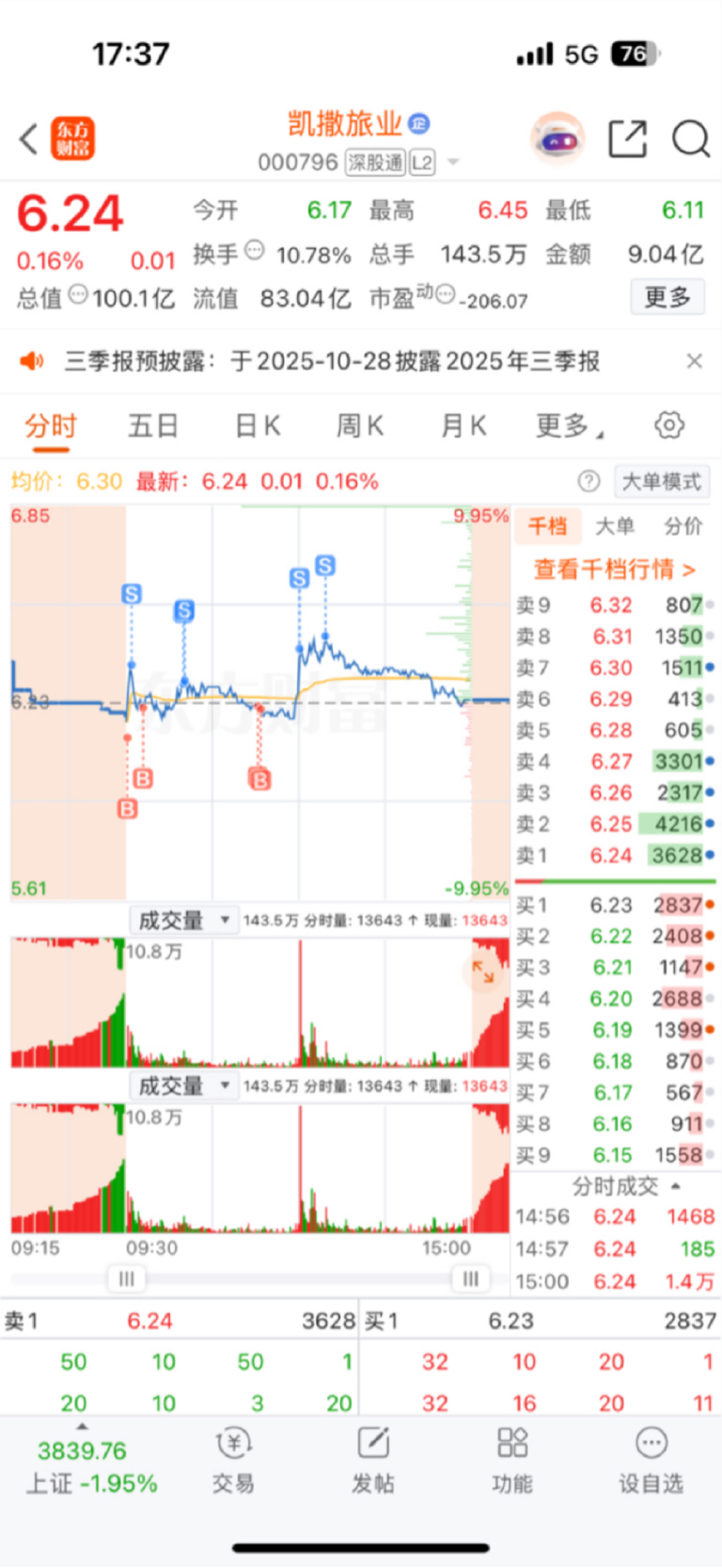$凯撒旅业(SZ000796)$ 理性看待,庄家反人性操作,连续两天放利好,我还是做踢,最低6.12开盘买的,最高6.44卖的。成本只有1元多了,下周继续主力。