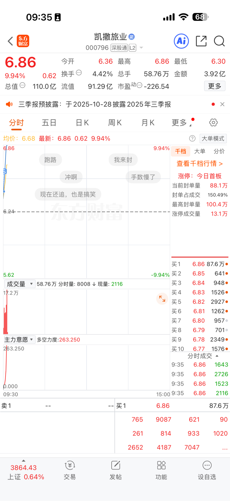 $凯撒旅业(SZ000796)$ 哎开盘跑了